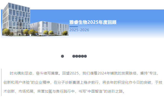 雅睿生物历经多年研发,在“自动化控制、图像处理、光学检测、镜检、液路、电子应用和软件”等方面形成了自主技术的积累,拥有国内外专利50余项和软件著作权约20项;自主研发了国际领先的 “基因检测技术平台”、“全自动液路提取技术平台”和“全自动微生物检测技术平台”,在此技术平台上,形成了“荧光定量PCR检测系统、等温荧光定量PCR扩增检测仪、便携式荧光定量PCR检测系统”,“核酸提取加样系统”和“核酸快速诊断系统”的产品组合。秉承“专注、创新和用户体验”的企业精神,雅睿产品全心服务于全球市场。